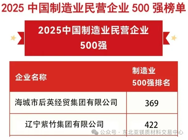 海城市后英經貿集團有限公司榮登2025中國制造業(yè)民營企業(yè)500強榜單,并以230.38億元營業(yè)收入名列第369位。