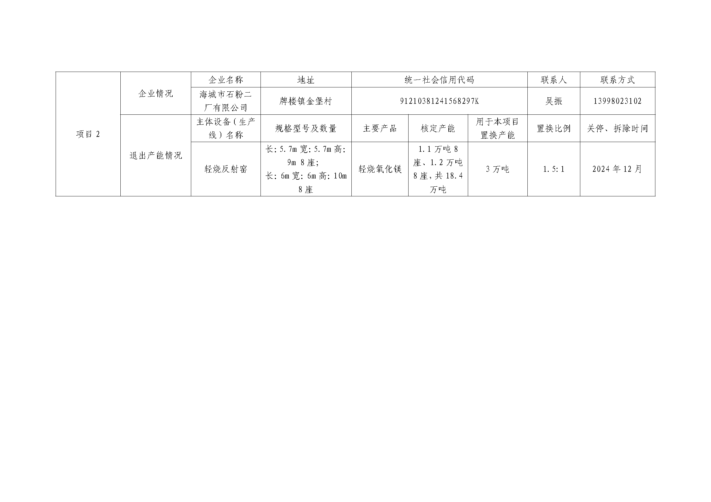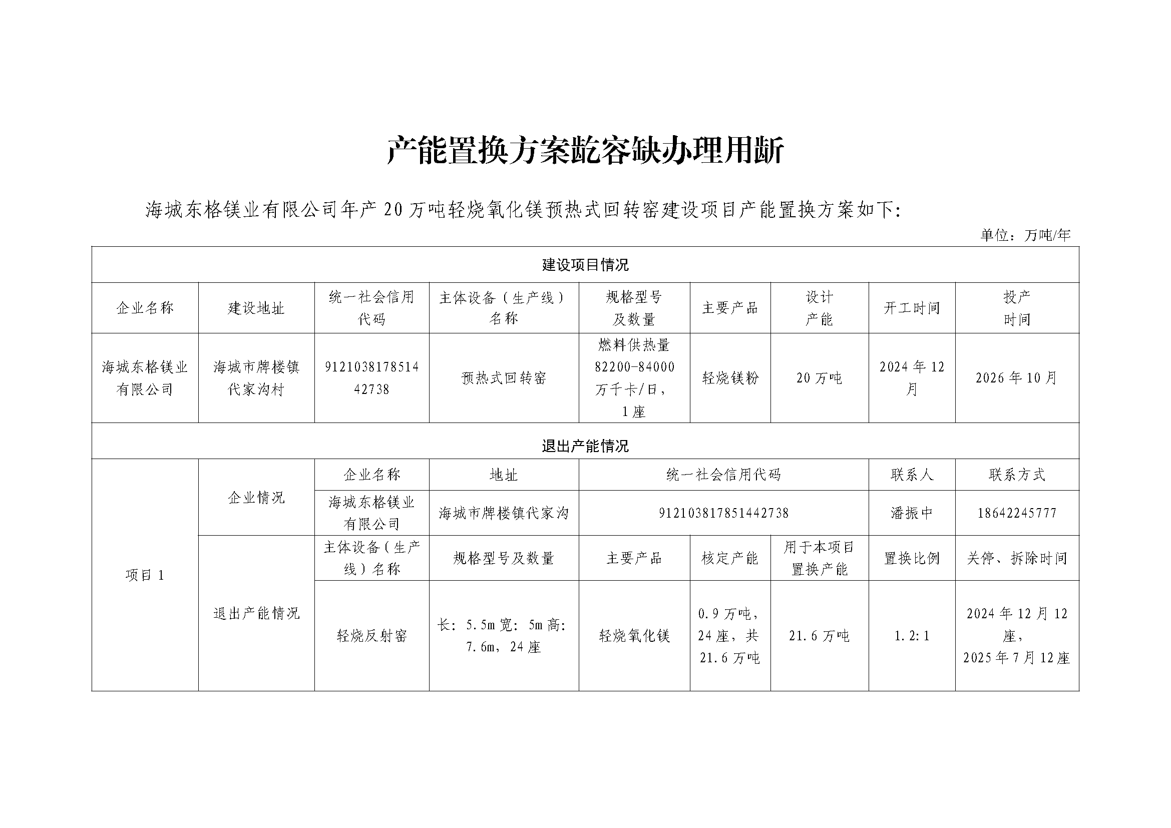 附件:海城東格鎂業(yè)有限公司產能置換方案