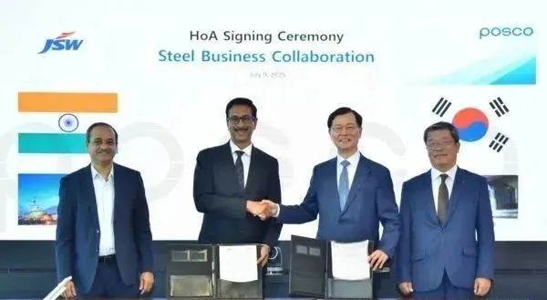 根據(jù)JSW鋼鐵有限公司8月18日發(fā)布的聲明,印度的JSW鋼鐵公司和韓國的浦項制鐵(POSCO)集團已簽署不具約束力的協(xié)議備忘錄(HoA),共同探索在印度新建一座年產(chǎn)能600萬噸的鋼鐵廠。聲明稱,該協(xié)議備忘錄是在雙方2024年10月簽署的諒解備忘錄(MoU)基礎(chǔ)上制定的,概述了擬成立的各占50%股份的合資企業(yè)的大致框架。