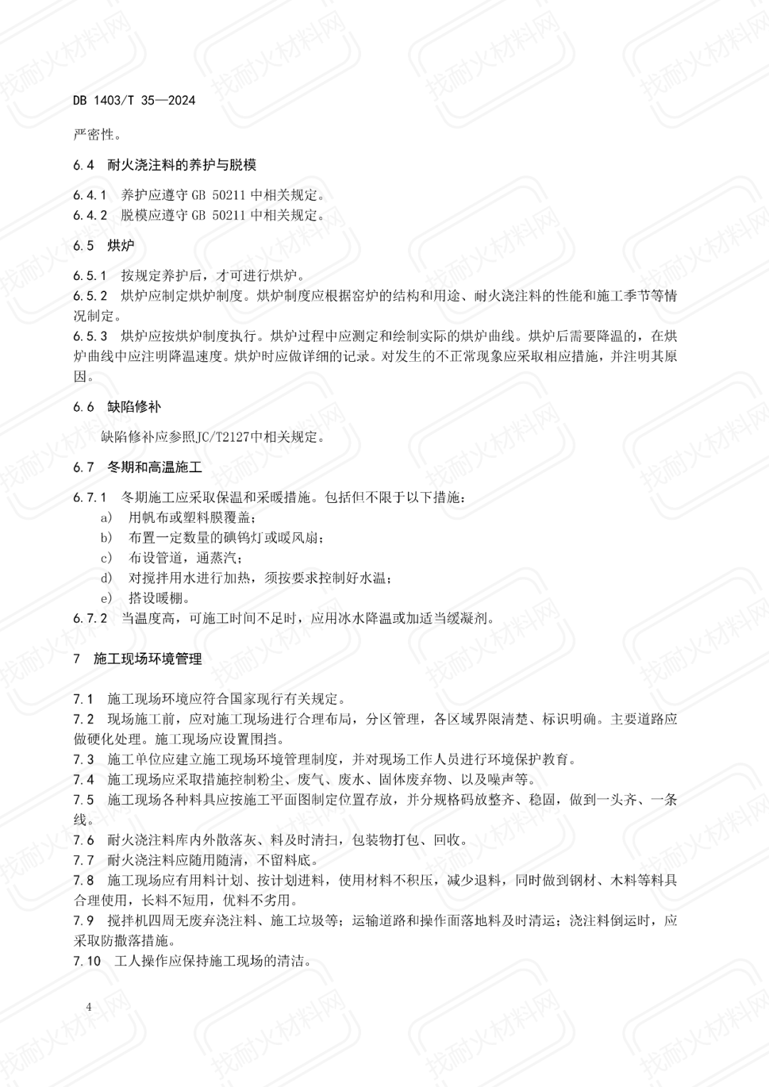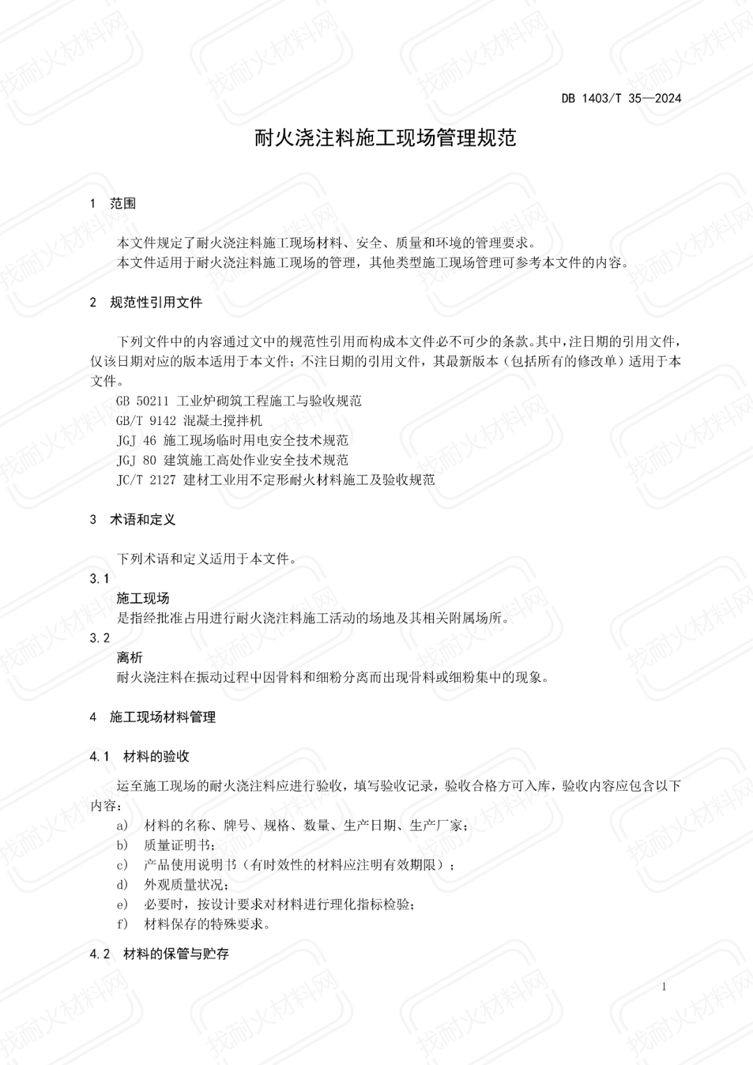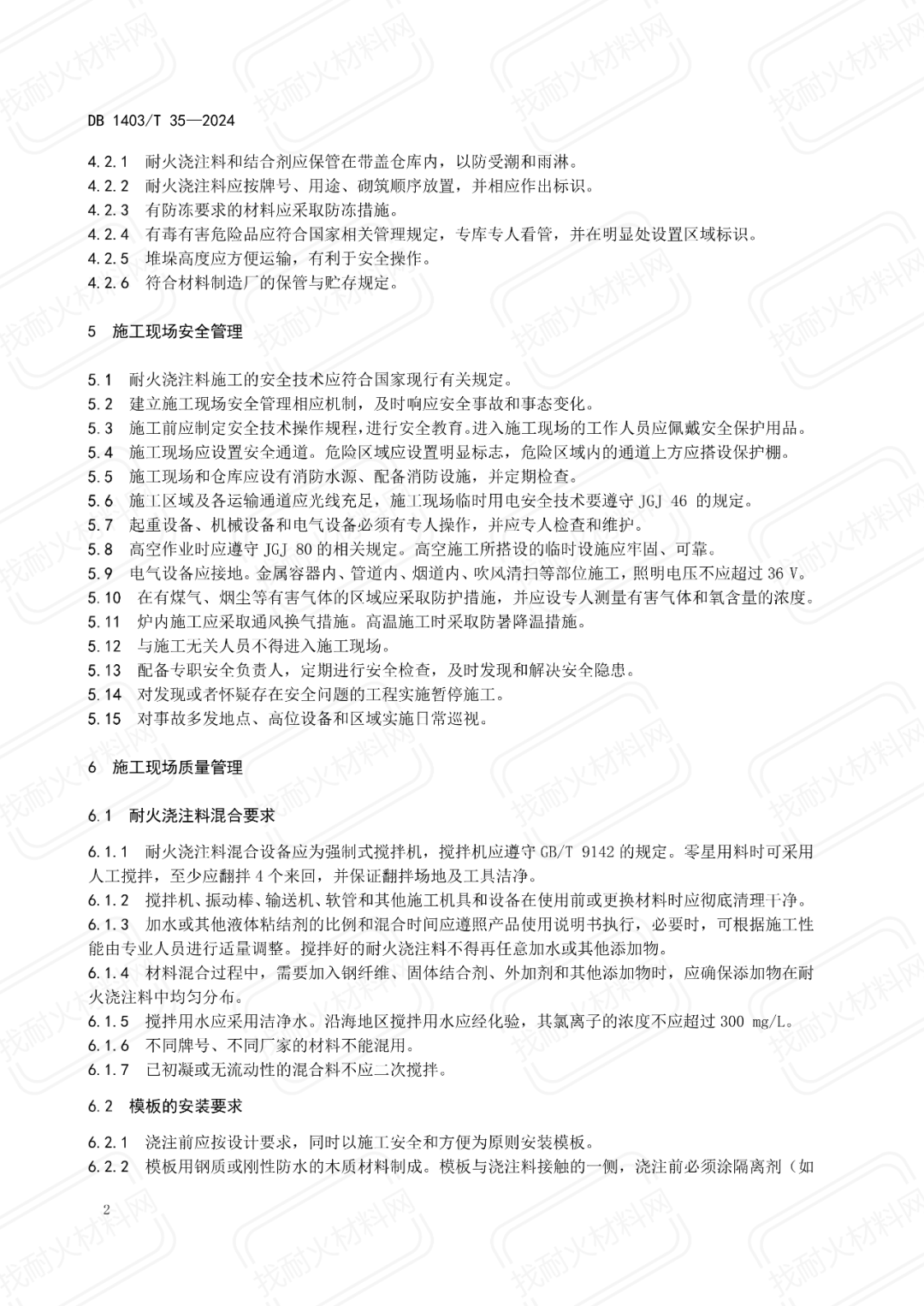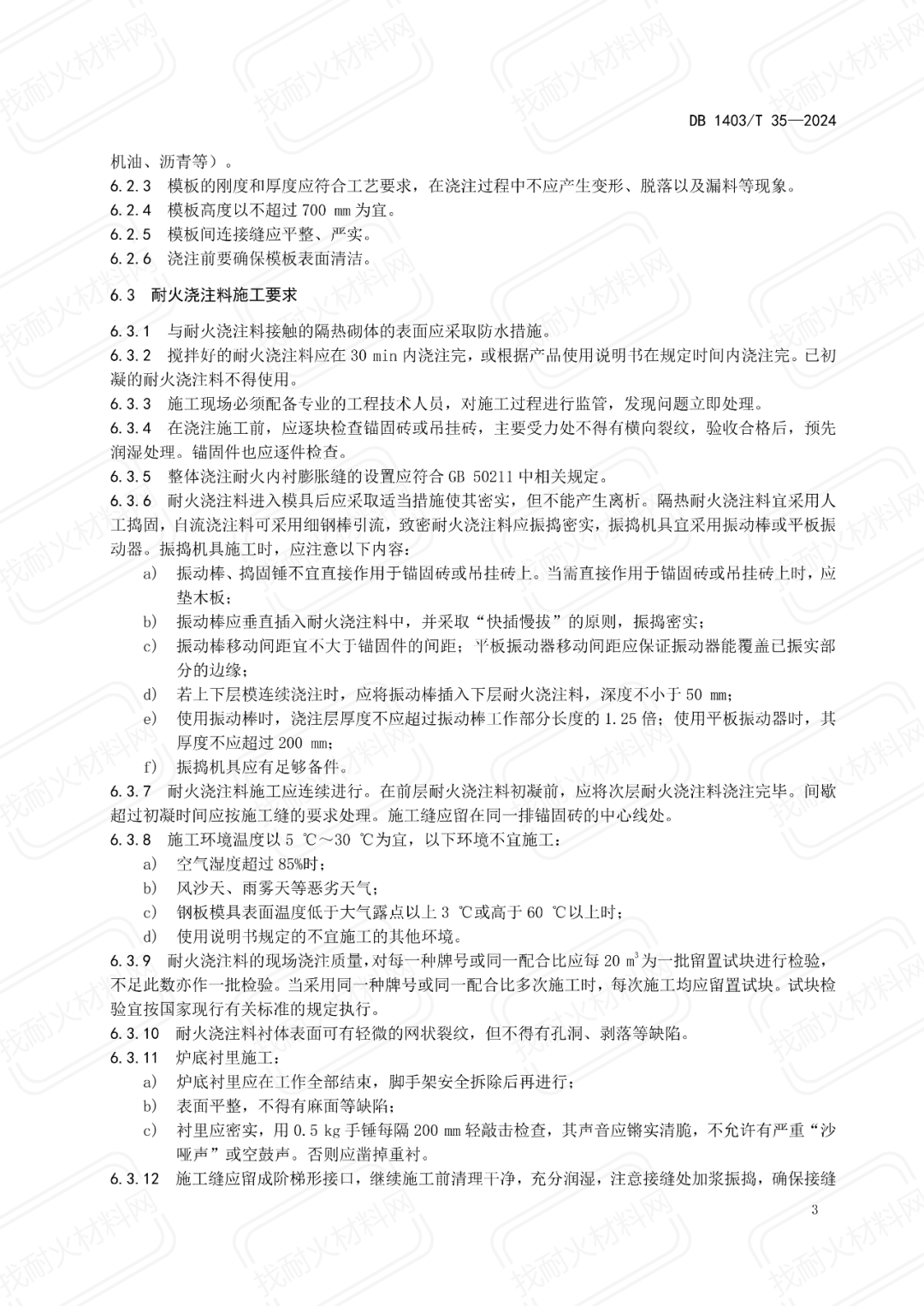 【地方標(biāo)準(zhǔn)】DB1403/T 35-2024耐火澆注料施工現(xiàn)場(chǎng)管理規(guī)范