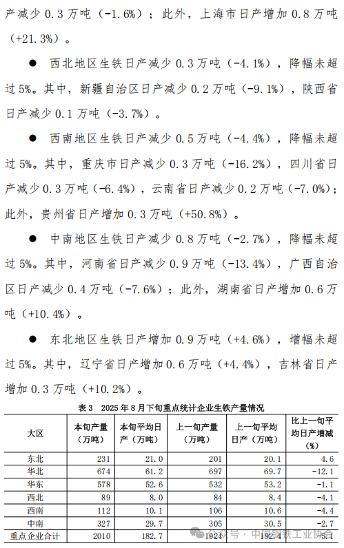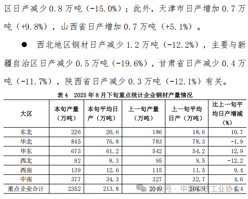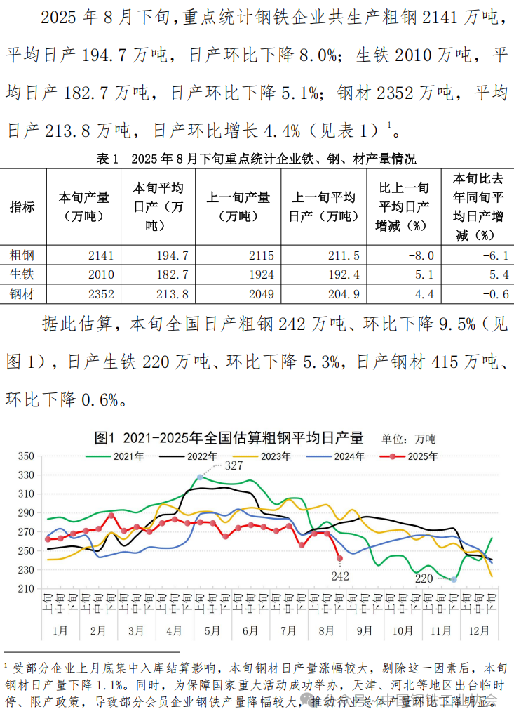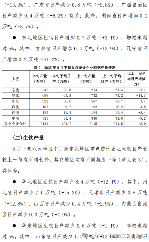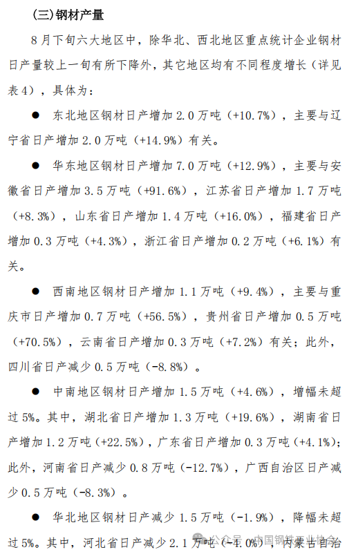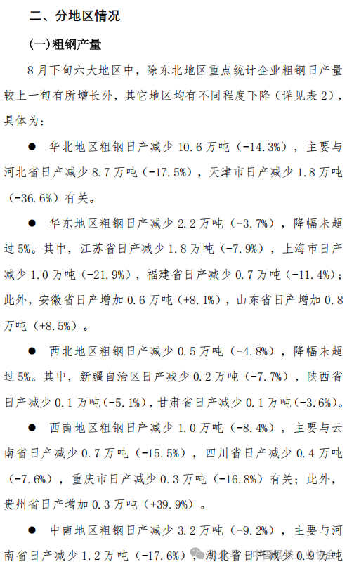 8月下旬重點(diǎn)統(tǒng)計(jì)企業(yè)鋼鐵產(chǎn)量旬報(bào)