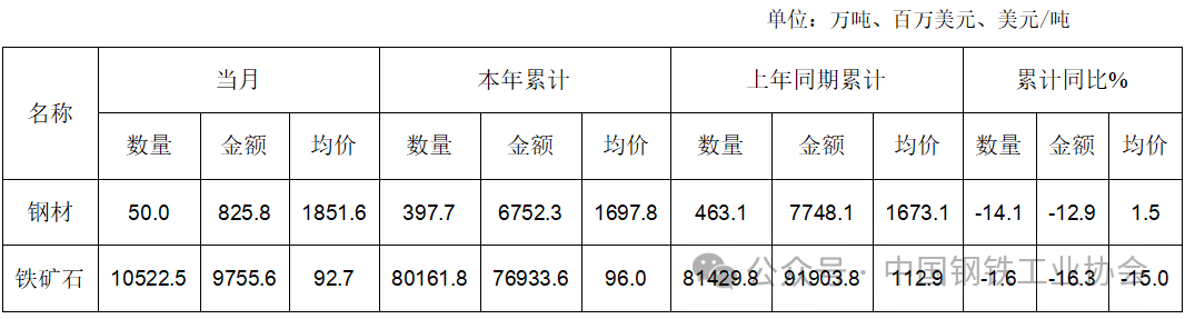 2025年8月鋼材、鐵礦石進(jìn)口數(shù)據(jù)
