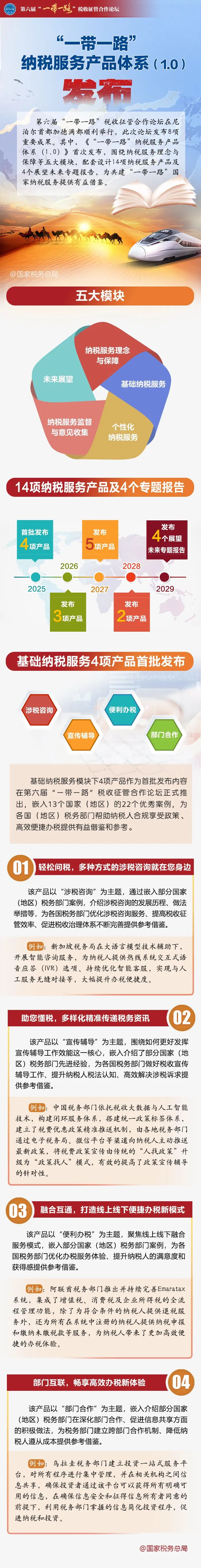 第六屆“一帶一路”稅收征管合作論壇在尼泊爾首都加德滿都順利舉行,此次論壇發(fā)布8項重要成果。其中,《“一帶一路”納稅服務(wù)產(chǎn)品體系(1.0)》首次發(fā)布,集成展示共建“一帶一路”國家通過納稅服務(wù)促進稅收遵從的豐富實踐,為優(yōu)化營商環(huán)境提供參考和借鑒。一圖了解相關(guān)內(nèi)容↓
