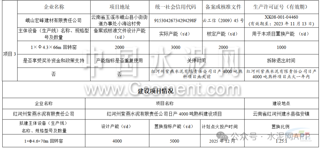 9月11日,云南省工信廳發(fā)布第18號、第19號公告。因故未實施,紅河州紫燕水泥有限責任公司申請撤銷“紅河州紫燕水泥有限責任公司日產(chǎn)4000噸水泥熟料建設項目產(chǎn)能置換方案”。按照原計劃,該企業(yè)擬建一條4000t/d熟料生產(chǎn)線項目,退出紅河州紫燕水泥有限責任公司2000t/d、盈江昆鋼榕全水泥有限公司2000t/d、峨山宏峰建材有限責任公司2000t/d共計3條生產(chǎn)線。
