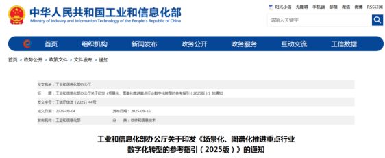 9月16日,工業(yè)和信息化部發(fā)布關(guān)于印發(fā)《場景化、圖譜化推進重點行業(yè)數(shù)字化轉(zhuǎn)型的參考指引(2025版)》的通知。