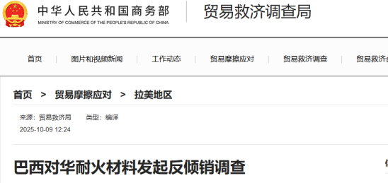2025年9月30日,巴西外貿(mào)秘書處在官方日報(bào)發(fā)布2025年第75號公告,決定應(yīng)巴西協(xié)會Associa??o Brasileira de Fabricantes de Refratários(Abrafar)申請,對進(jìn)口自中國的耐火材料(葡萄牙語:refratários básicos e n?o básicos)啟動反傾銷調(diào)查。涉案產(chǎn)品的南共市稅號為6815.91.10、6815.91.90、6815.99.19、6815.99.90、6902.10.18、6902.10.19、6902.10.90、6902.20.10、6902.20.91、6902.20.99和6902.90.90。本案傾銷調(diào)查期為2023年10月至2024年9月,損害分析期為2019年10月至2024年9月。