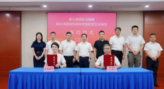 10月11日下午,振石集團東方特鋼綠色高端鎳鉻新材智造配套空分項目簽約儀式在嘉興南湖高新區(qū)舉行,它的落地將有力推動南湖制造業(yè)向高端化、智能化、綠色化發(fā)展。南湖區(qū)委副書記、區(qū)長王志軍,區(qū)委常委、嘉興南湖高新區(qū)黨工委副書記陳裕,振石控股集團總裁張健侃,振石控股集團副總裁、東方特鋼董事長劉曉亞等出席并見證簽約。