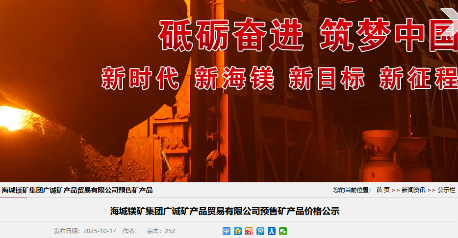海城鎂礦集團廣誠礦產(chǎn)品貿(mào)易有限公司預(yù)售礦產(chǎn)品價格公示