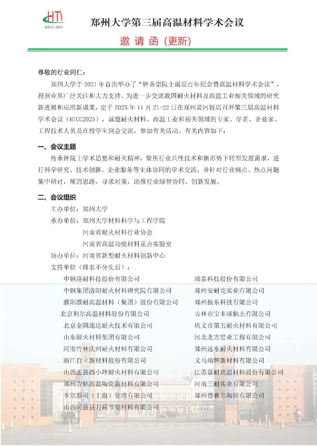 鄭州大學第三屆高溫材料學術會議 邀請函