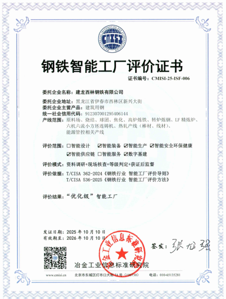 近日,在第六屆中國(guó)鋼鐵工業(yè)智能制造發(fā)展大會(huì)上,建龍西鋼被授予“優(yōu)化級(jí)”智能工廠評(píng)價(jià)證書(shū),成為首批獲得該評(píng)價(jià)證書(shū)的10家鋼鐵企業(yè)之一,標(biāo)志著建龍西鋼在智能工廠建設(shè)方面邁出了具有里程碑意義的關(guān)鍵一步。