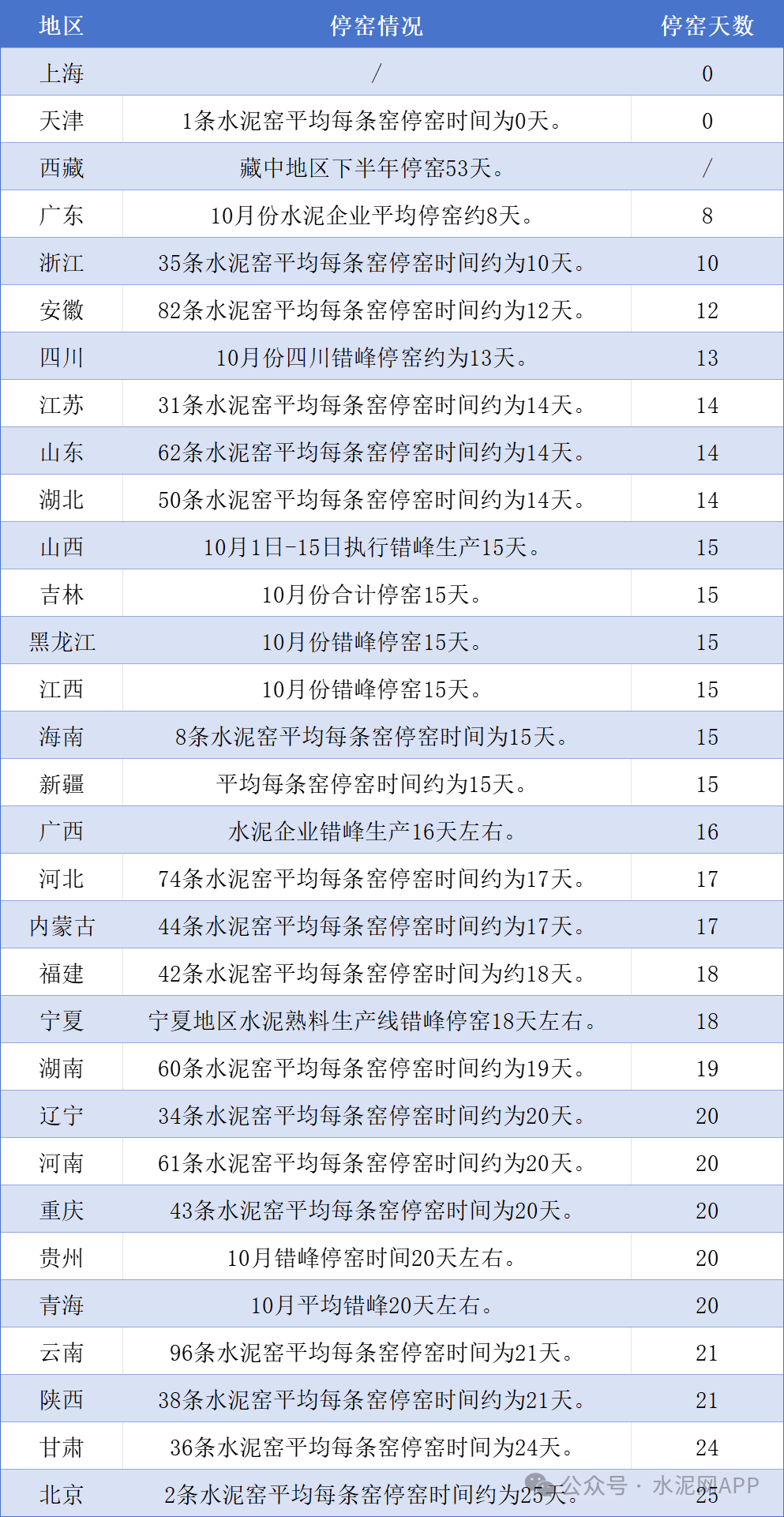 2025年10月,全國市場需求有所分化。北方地區(qū)天氣漸冷,下游施工量減少,企業(yè)錯峰天數(shù)有所增加;南方地區(qū)下游需求小幅好轉(zhuǎn),錯峰時間微有減少。總的來看,10月停窯時間小幅縮短,產(chǎn)能利用率有所提高。
