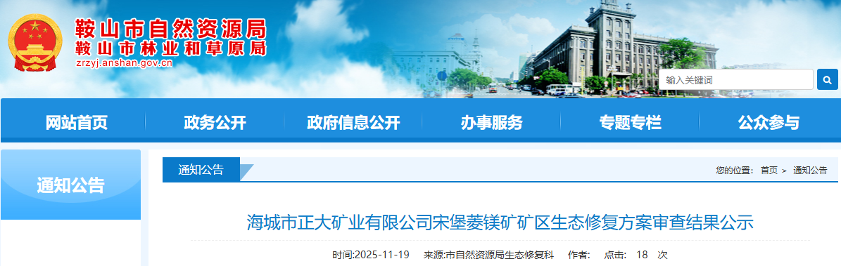 根據(jù)《遼寧省自然資源廳關(guān)于〈中華人民共和國(guó)礦產(chǎn)資源法〉實(shí)施衘接過(guò)渡期礦區(qū)生態(tài)修復(fù)方案評(píng)審工作的公告》、《遼寧省自然資源廳關(guān)于印發(fā)<礦山地質(zhì)環(huán)境保護(hù)與土地復(fù)墾方案省級(jí)審查管理辦法(試行)>的通知》(遼自然資發(fā)〔2022〕129號(hào))有關(guān)要求,我局組織專家對(duì)《海城市正大礦業(yè)有限公司宋堡菱鎂礦礦區(qū)生態(tài)修復(fù)方案》進(jìn)行了審查?,F(xiàn)將擬通過(guò)的方案及專家評(píng)審意見(jiàn)進(jìn)行公示,公示期自發(fā)布之日起7個(gè)工作日。