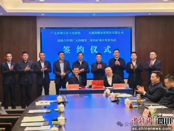 11月13日,四川省廣元市朝天區(qū)人民政府與安徽海螺水泥股份有限公司戰(zhàn)略合作暨項目投資協(xié)議簽約儀式在廣元舉行。
