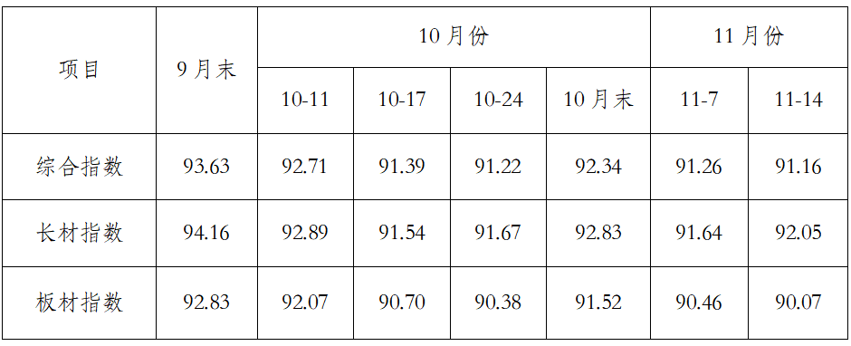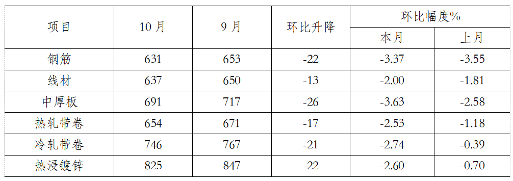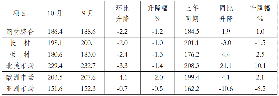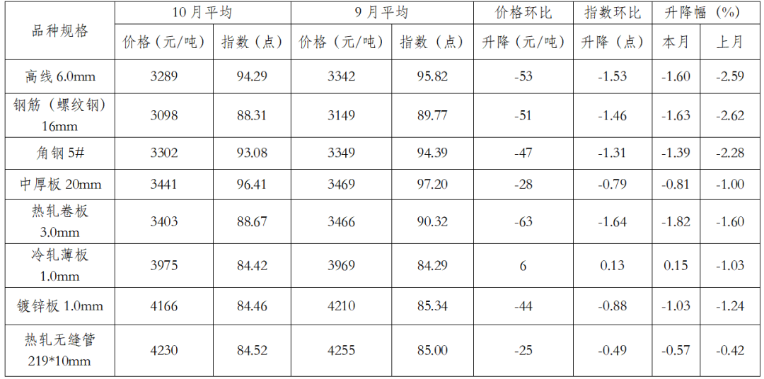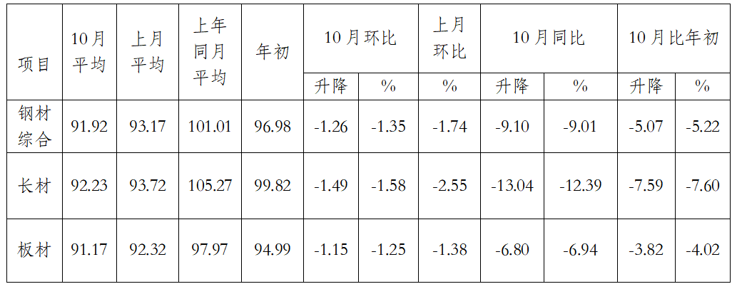 一、10月份國(guó)內(nèi)鋼價(jià)指數(shù)均值環(huán)比繼續(xù)下降