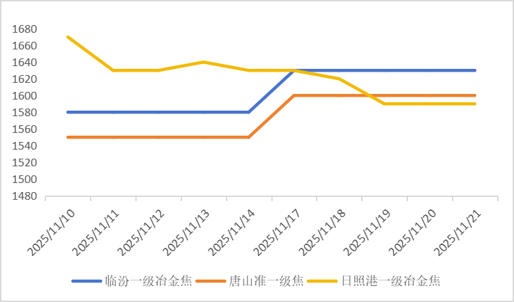四輪提漲后焦企利潤略有修復,多數(shù)維持正常生產(chǎn),廠內(nèi)庫存保持低位,焦炭主產(chǎn)地價格全周走平,臨汾一級冶金焦穩(wěn)定在1630元/噸,唐山準一級焦穩(wěn)定在1600元/噸。日照港一級冶金焦價格呈現(xiàn)先抑后穩(wěn)的態(tài)勢,在17到18日的連續(xù)下跌之后保持穩(wěn)定,港口價格走弱且與產(chǎn)地出現(xiàn)“倒掛”,貿(mào)易商對后市并不看好。