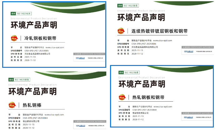 近日,敬業(yè)鋼鐵4款鋼鐵產(chǎn)品的環(huán)境產(chǎn)品聲明(EPD)順利通過中國(guó)船級(jí)社認(rèn)證,并成功發(fā)布于中國(guó)鋼鐵工業(yè)協(xié)會(huì)EPD平臺(tái)。這4份EPD報(bào)告涉及產(chǎn)品分別為熱軋鋼板和鋼帶、熱軋鋼棒、冷軋鋼板和鋼帶、連續(xù)熱鍍鋅鍍層鋼板和鋼帶。