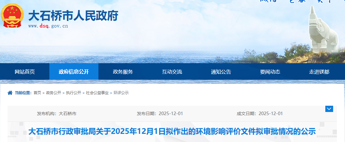根據(jù)建設(shè)項(xiàng)目環(huán)境影響評價(jià)審批程序的有關(guān)規(guī)定,經(jīng)審查,我局?jǐn)M對1個項(xiàng)目環(huán)境影響評價(jià)文件作出審批意見。為保證此次審查工作的嚴(yán)肅性和公正性,現(xiàn)將擬作出審批意見的環(huán)境影響評價(jià)文件基本情況予以公示,公示期為2025年12月1日-2025年12月5日(5個工作日)。