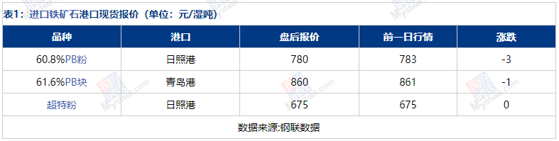 綜合來(lái)看,預(yù)計(jì)明日天津地區(qū)進(jìn)口礦現(xiàn)貨市場(chǎng)或?qū)⒄鹗庍\(yùn)行。