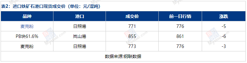 2 鐵礦石調(diào)研數(shù)據(jù)