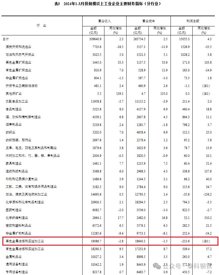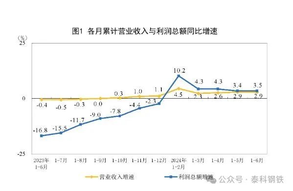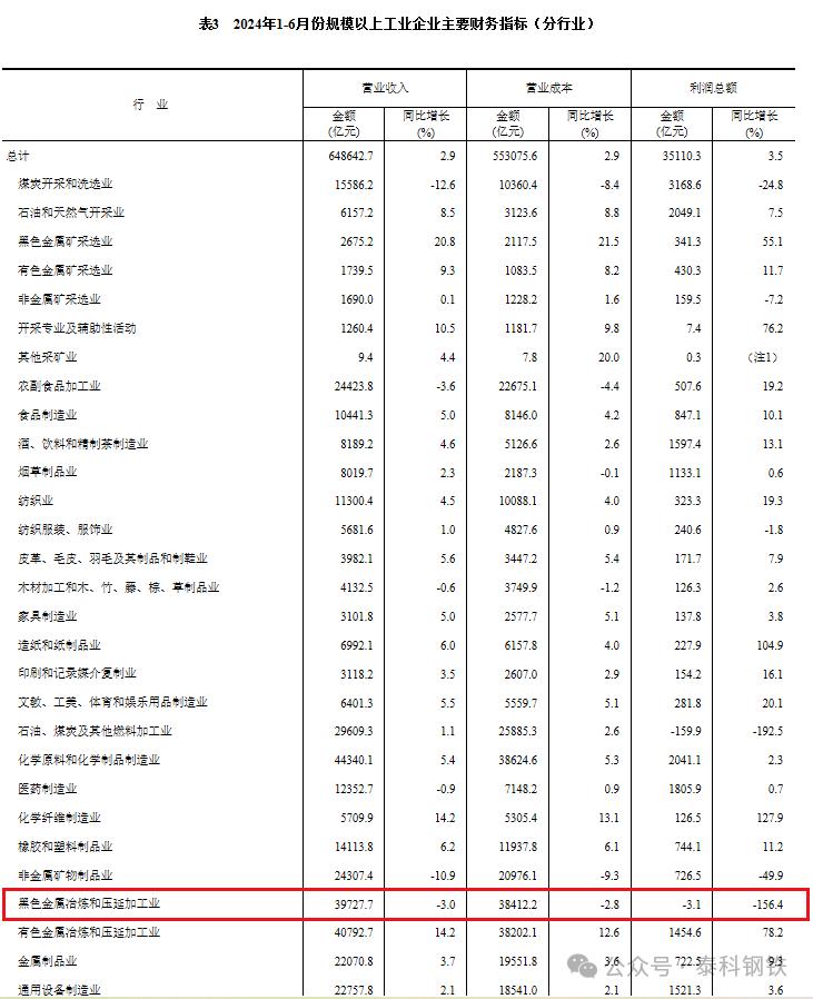 分行業(yè)看,在41個(gè)工業(yè)大類行業(yè)中,有32個(gè)行業(yè)上半年利潤同比增長,增長面為78.0%,與1-5月份持平。受房地產(chǎn)新開工面積降幅收窄、大規(guī)模設(shè)備更新政策效果顯現(xiàn)等因素推動(dòng),鋼鐵需求有所回升,二季度鋼鐵行業(yè)利潤實(shí)現(xiàn)較快增長,扭轉(zhuǎn)了鋼鐵行業(yè)一季度全行業(yè)凈虧損的局面。(鋼鐵行業(yè)2024年1-3月虧損213.6億元,1-6月虧損3.1億元,這意味著第二季度,鋼鐵行業(yè)實(shí)現(xiàn)了利潤總額210.5億元)。