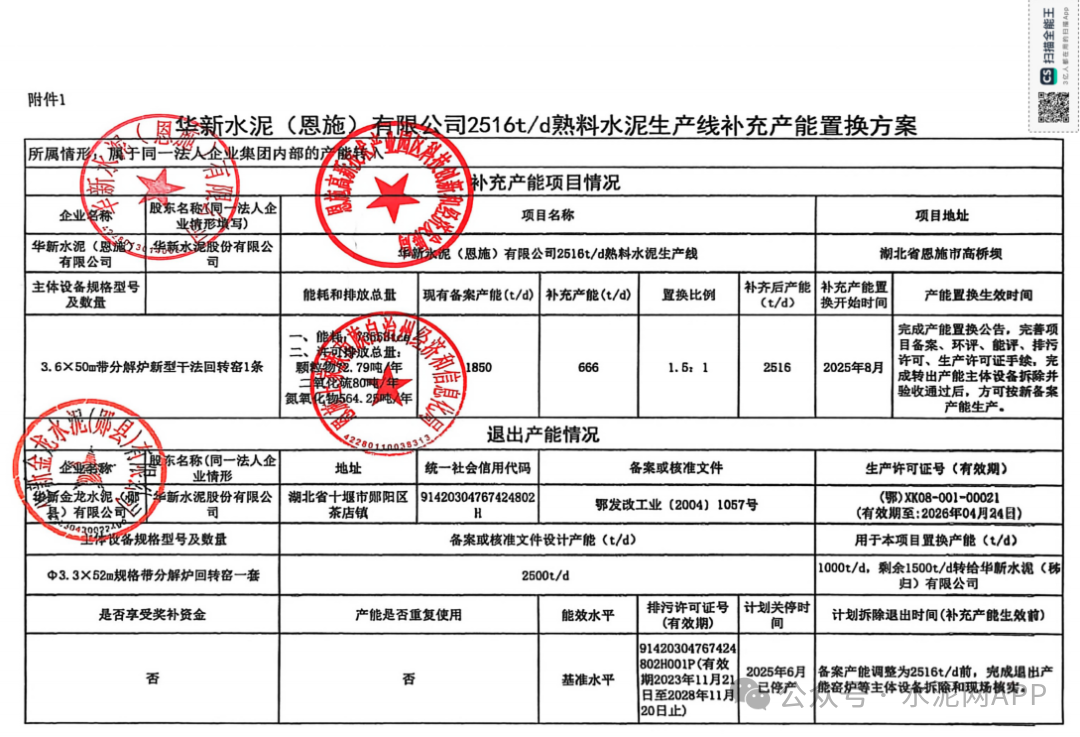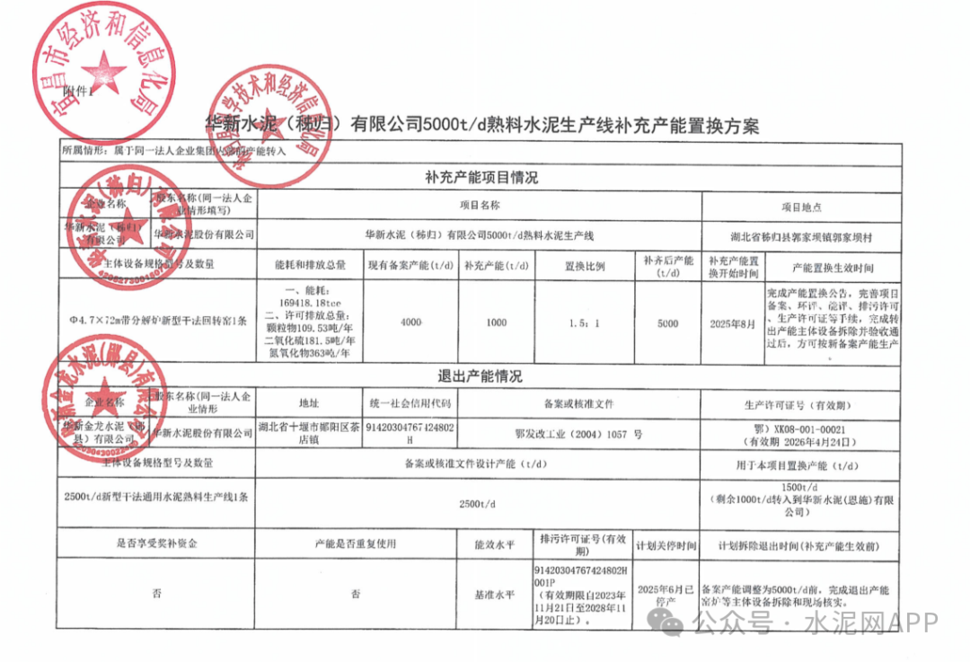 1月4日,湖北省經(jīng)信廳發(fā)布“關于華新水泥(秭歸)有限公司日產(chǎn)5000噸水泥熟料生產(chǎn)線項目補充產(chǎn)能置換方案的公示”、“關于華新水泥(恩施)有限公司日產(chǎn)2516噸水泥熟料生產(chǎn)線項目補充產(chǎn)能置換方案的公示”。置換方案顯示,華新金龍水泥(鄖縣)公司退出一條2500t/d生產(chǎn)線,其中1500t/d產(chǎn)能用于補充華新水泥(遞歸)公司一條4000t/d生產(chǎn)線,補齊后產(chǎn)能5000t/d,置換比例1.5:1;剩余1000t/d產(chǎn)能用于補充華新水泥(恩施)公司一條1850t/d生產(chǎn)線,補齊后產(chǎn)能2516t/d,置換比例1.5:1。