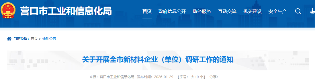 按照遼寧省工業(yè)和信息化廳《關于開展全省新材料企業(yè)(單位)調研工作的通知》(以下簡稱“通知”,附件1)要求,請你單位立即開展轄區(qū)內新材料企業(yè)(單位)調研工作,按照文件要求,要重點做好以下三方面工作: