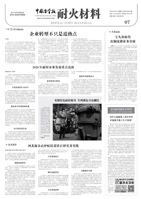 在鋼鐵行業(yè)減量調(diào)整、耐材市場量價齊跌的背景下,2026年作為“十五五”規(guī)劃開局之年,已成為耐材企業(yè)轉(zhuǎn)型突圍的關(guān)鍵窗口。北京利爾、中鋼洛耐、瑞泰科技、山東耐材、江蘇寶宜瑞、金隅通達等企業(yè)在2026年初密集召開年度工作會議,其部署既呈現(xiàn)了行業(yè)發(fā)展的共性邏輯,又彰顯具體現(xiàn)狀及其特色,折射出中國耐材產(chǎn)業(yè)邁向高質(zhì)量發(fā)展的集體自覺。