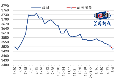 2026年第9周(2026.2.23-2.27)蘭格鋼鐵全國(guó)絕對(duì)價(jià)格指數(shù)為3469元,較節(jié)前下降0.1%,較去年同期下降5.6%;其中,蘭格鋼鐵長(zhǎng)材絕對(duì)價(jià)格指數(shù)為3345元,與節(jié)前持平,較去年同期下降4.8%;蘭格鋼鐵型材絕對(duì)價(jià)格指數(shù)為3399元,與節(jié)前持平,較去年同期下降6.6%;蘭格鋼鐵板材絕對(duì)價(jià)格指數(shù)為3526元,較節(jié)前下降0.4%,較去年同期下降6.0%;蘭格鋼鐵管材絕對(duì)價(jià)格指數(shù)為3879元,與節(jié)前持平,較去年同期下降6.2%。