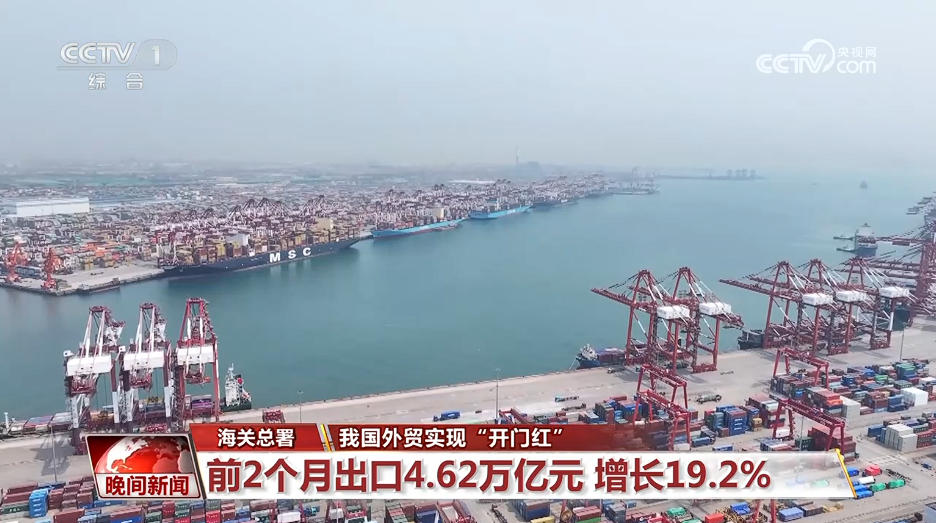 央視網消息:海關總署3月10日發(fā)布外貿數據,今年前2個月,我國貨物貿易進出口同比增長18.3%,外貿開局良好。