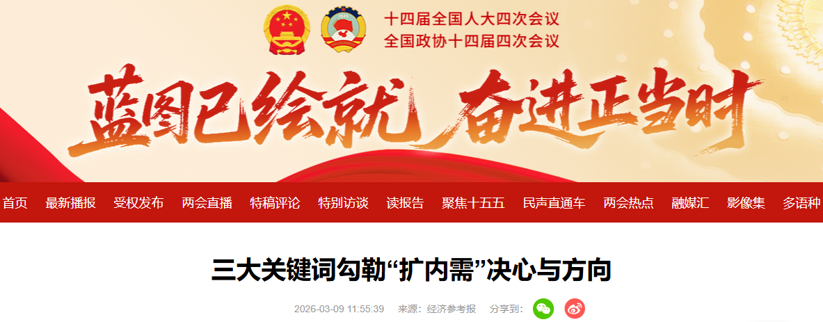 今年的政府工作報(bào)告中,“擴(kuò)內(nèi)需”不僅繼續(xù)位列工作任務(wù)之首,更被賦予新的政策內(nèi)涵與操作路徑。從代表委員以及業(yè)界專家觀點(diǎn)來看,“民生為大”“向新而行”“加減乘除”成為三個(gè)核心關(guān)鍵詞,從政策導(dǎo)向、承載路徑和保障舉措三個(gè)方面,共同勾勒出“十五五”開局之年擴(kuò)大內(nèi)需的決心與方向。