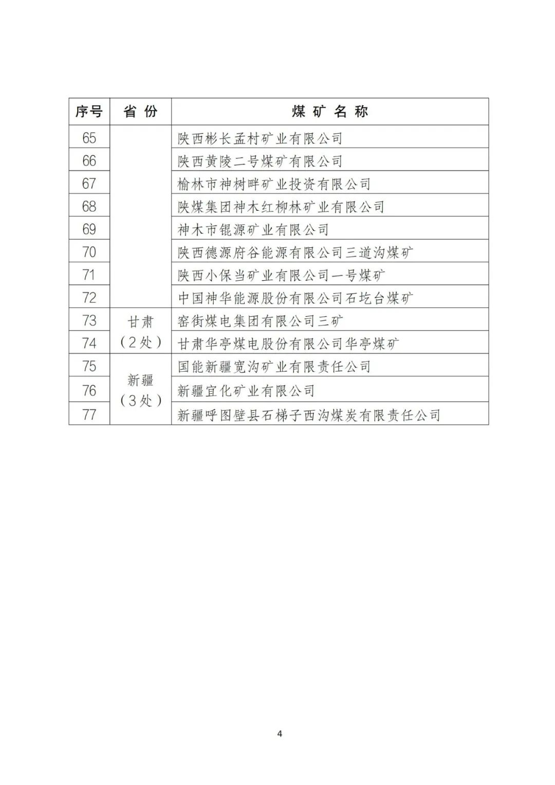 礦安〔2024〕76號(hào)各產(chǎn)煤省、自治區(qū)及新疆生產(chǎn)建設(shè)兵團(tuán)煤礦安全監(jiān)管部門、煤炭行業(yè)管理部門,國(guó)家礦山安全監(jiān)察局各省級(jí)局,有關(guān)中央企業(yè):按照《煤礦安全生產(chǎn)標(biāo)準(zhǔn)化管理體系考核定級(jí)辦法(試行)》(煤安監(jiān)行管〔2020〕16號(hào))等規(guī)定,經(jīng)資料審查、現(xiàn)場(chǎng)檢查抽查、網(wǎng)上公示,確認(rèn)山西晉城沁城煤業(yè)有限責(zé)任公司等77處煤礦(詳見附件)為安全生產(chǎn)標(biāo)準(zhǔn)化管理體系一級(jí)達(dá)標(biāo)煤礦,現(xiàn)予以公布。自公布之日起生效,有效期3年,符合相關(guān)條件的,可申請(qǐng)自動(dòng)延期。根據(jù)《關(guān)于大力推進(jìn)煤礦安全生產(chǎn)標(biāo)準(zhǔn)化建設(shè)工作的通知》(安監(jiān)總煤行〔2017〕59號(hào))、《關(guān)于進(jìn)一步完善煤炭產(chǎn)能置換政策加快優(yōu)質(zhì)產(chǎn)能釋放促進(jìn)落后產(chǎn)能有序退出的通知》(發(fā)改辦能源〔2018〕151號(hào))、《關(guān)于印發(fā)煤礦生產(chǎn)能力管理辦法和核定標(biāo)準(zhǔn)的通知》(應(yīng)急〔2021〕30號(hào))等有關(guān)規(guī)定,上述77處煤礦在安全生產(chǎn)標(biāo)準(zhǔn)化管理體系一級(jí)等級(jí)有效期內(nèi)享受以下激勵(lì)政策:一、在全國(guó)性或區(qū)域性調(diào)整、實(shí)施減量化生產(chǎn)措施時(shí),原則上不納入減量化生產(chǎn)煤礦范圍。二、在地方政府因其他煤礦發(fā)生事故采取區(qū)域政策性停產(chǎn)措施時(shí),原則上不納入停產(chǎn)范圍。三、申請(qǐng)生產(chǎn)能力核增時(shí),在同等條件下,可優(yōu)先開展審查確認(rèn)工作;新投產(chǎn)的煤礦和已核定生產(chǎn)能力的煤礦,通過生產(chǎn)能力核定提高產(chǎn)能規(guī)模的間隔時(shí)間,可按規(guī)定縮短。四、生產(chǎn)能力核增時(shí),產(chǎn)能置換比例不小于核增產(chǎn)能的100%,通過改擴(kuò)建、技術(shù)改造增加優(yōu)質(zhì)產(chǎn)能超過120萬噸/年以上的,所需產(chǎn)能置換指標(biāo)折算比例可提高為200%。五、生產(chǎn)能力核增時(shí),核增幅度可在“不超過煤炭工業(yè)設(shè)計(jì)規(guī)范標(biāo)準(zhǔn)設(shè)計(jì)井型規(guī)模2級(jí)級(jí)差”規(guī)定的基礎(chǔ)上,上浮1級(jí)級(jí)差;實(shí)現(xiàn)“一井一面”或智能化開采的,核增幅度可上浮2級(jí)級(jí)差。六、在安全生產(chǎn)許可證有效期屆滿時(shí),符合相關(guān)條件的,可以直接辦理延期手續(xù)。七、銀行保險(xiǎn)、證券、擔(dān)保等主管部門作為對(duì)煤礦企業(yè)信用評(píng)級(jí)重要參考依據(jù)。八、各級(jí)煤礦安全監(jiān)管監(jiān)察部門適當(dāng)減少檢查頻次;煤礦停產(chǎn)后復(fù)產(chǎn)驗(yàn)收時(shí),優(yōu)先進(jìn)行復(fù)產(chǎn)驗(yàn)收。附件:安全生產(chǎn)標(biāo)準(zhǔn)化管理體系一級(jí)達(dá)標(biāo)煤礦名單(第十一批)