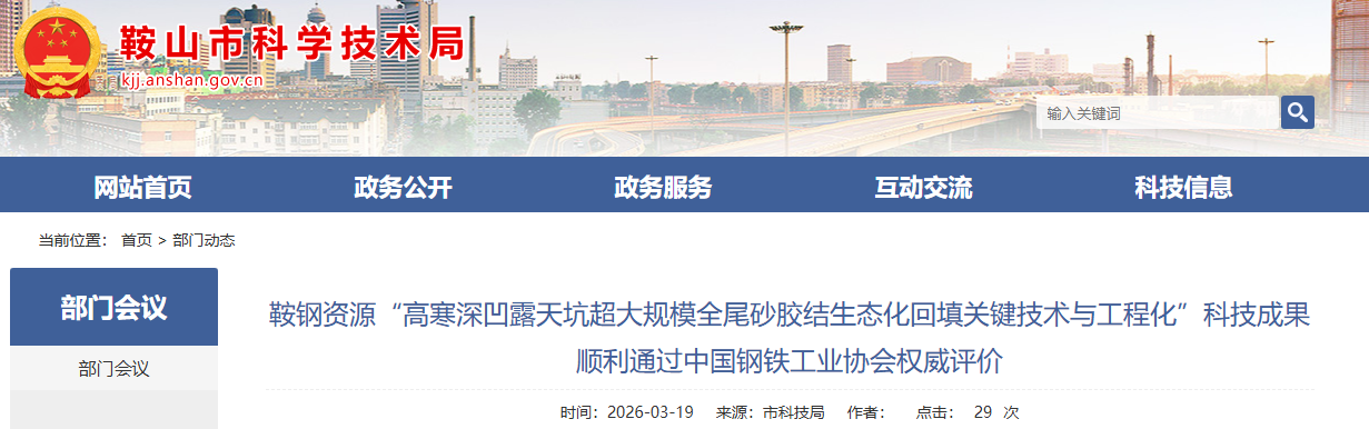 日前,由鞍鋼資源牽頭完成的“高寒深凹露天坑超大規(guī)模全尾砂膠結(jié)生態(tài)化回填關(guān)鍵技術(shù)與工程化”科技成果順利通過(guò)中國(guó)鋼鐵工業(yè)協(xié)會(huì)組織的權(quán)威評(píng)價(jià)。專家組一致認(rèn)定,該成果整體技術(shù)達(dá)到國(guó)際領(lǐng)先水平,標(biāo)志著我國(guó)在深凹露天礦綠色治理與尾砂資源化利用領(lǐng)域?qū)崿F(xiàn)原創(chuàng)性、引領(lǐng)性突破,為保障國(guó)家鐵礦資源安全、推動(dòng)鋼鐵產(chǎn)業(yè)鏈綠色低碳轉(zhuǎn)型提供核心技術(shù)支撐。據(jù)悉,該科技成果已在鞍鋼礦業(yè)大孤山鐵礦生態(tài)修復(fù)工程中成功落地應(yīng)用,建成全球最大規(guī)模3400萬(wàn)噸/年全尾砂膠結(jié)回填系統(tǒng),單套系統(tǒng)產(chǎn)能突破400立方米/小時(shí),實(shí)現(xiàn)超大流量、連續(xù)化、高質(zhì)量膠結(jié)料漿制備與長(zhǎng)距離輸送,形成了一批具有完全自主知識(shí)產(chǎn)權(quán)的首創(chuàng)技術(shù)與成套裝備,填補(bǔ)了國(guó)內(nèi)外高寒深凹露天坑超大規(guī)模生態(tài)化回填技術(shù)空白,為我國(guó)露天轉(zhuǎn)地下礦山治理、綠色礦山建設(shè)與尾砂資源化利用,打造了可復(fù)制、可推廣的“鞍鋼方案”。未來(lái),鞍鋼資源將加快核心技術(shù)攻關(guān)與成果轉(zhuǎn)化,以高水平科技自立自強(qiáng)支撐國(guó)家鐵礦資源保障能力提升,助力鋼鐵行業(yè)高質(zhì)量發(fā)展與生態(tài)文明建設(shè)。
