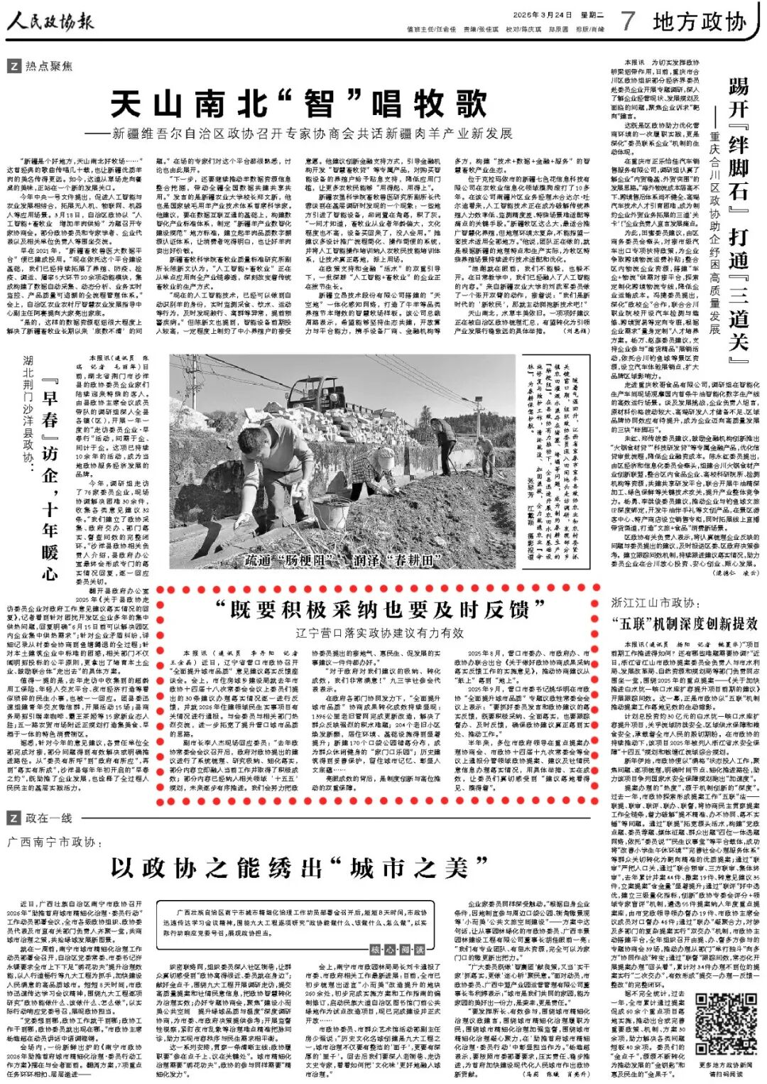 2025年9月,營口市委書記姚華明在市政協(xié)“全面提升城市品質(zhì)”專題議政性常委會會議上表示:“要抓好委員發(fā)言和政協(xié)建議的落實(shí)反饋,既要積極采納、全面落實(shí),也要跟蹤督辦、及時(shí)反饋,確保政協(xié)建議真正落到實(shí)處、推動(dòng)工作?!?