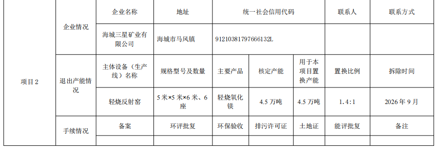 2.海城市中進(jìn)鎂砂廠產(chǎn)能置換方案