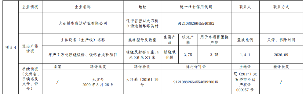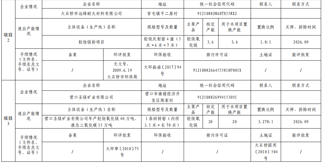 1.營口鴻成耐火材料有限公司產(chǎn)能置換方案
