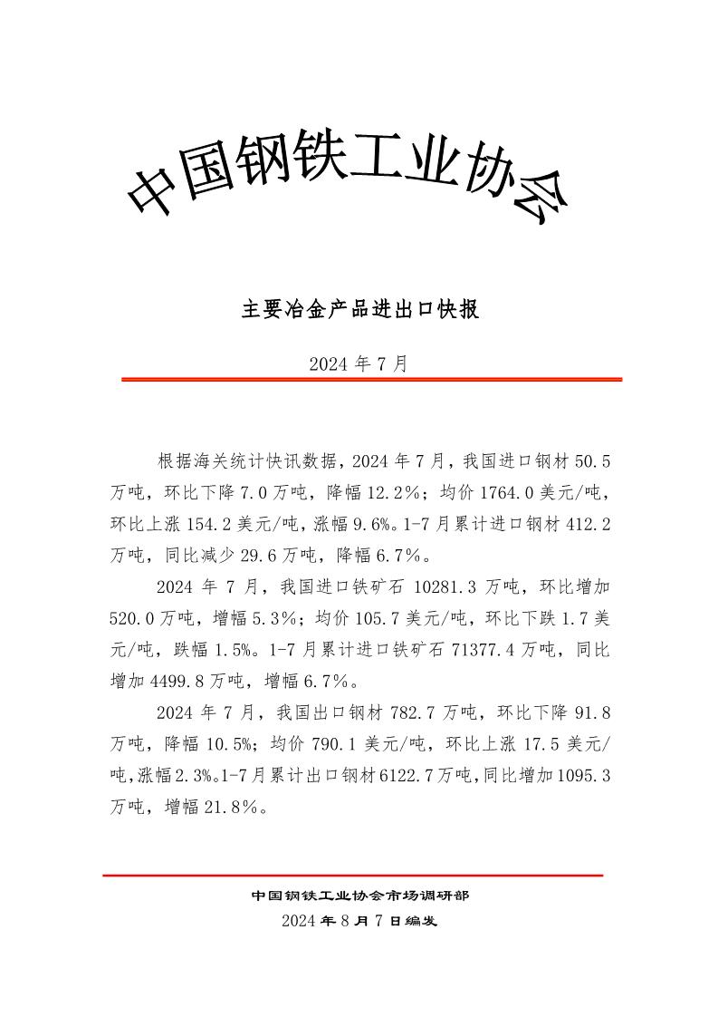 7月主要冶金產(chǎn)品進(jìn)出口快報(bào)