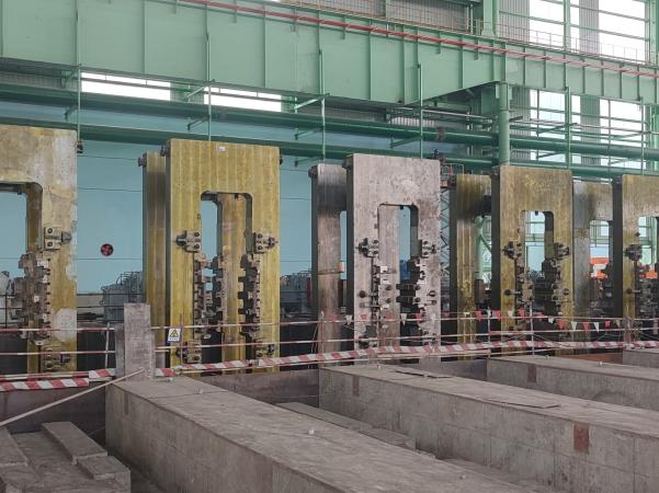 該項(xiàng)目酸軋聯(lián)合機(jī)組中的軋機(jī)為五機(jī)架連軋機(jī)組,軋機(jī)機(jī)型為五機(jī)架六輥串列式冷連軋機(jī),位于酸軋跨(1A-1B)142~143線間。連軋機(jī)機(jī)架共10片,單片機(jī)架(牌坊)重約為65噸。