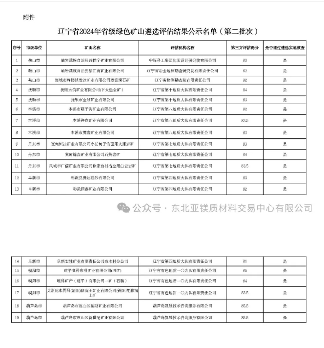 附件:遼寧省2024年省級(jí)綠色礦山遴選評(píng)估結(jié)果公示名單(第二批次)