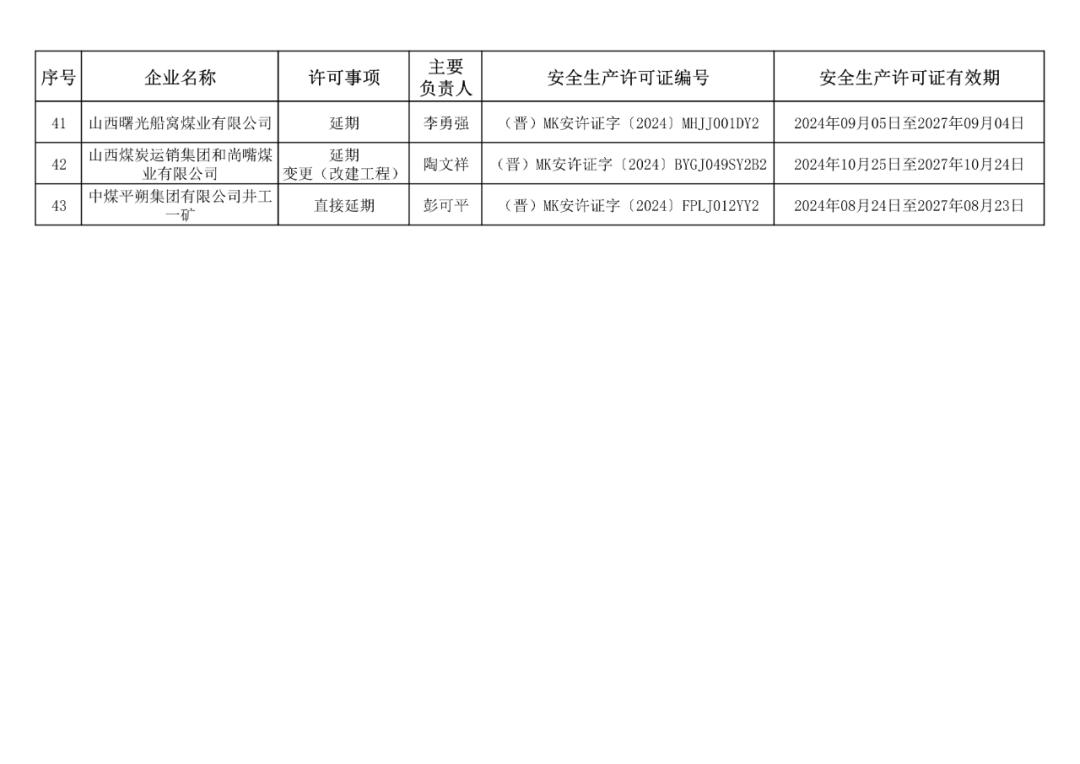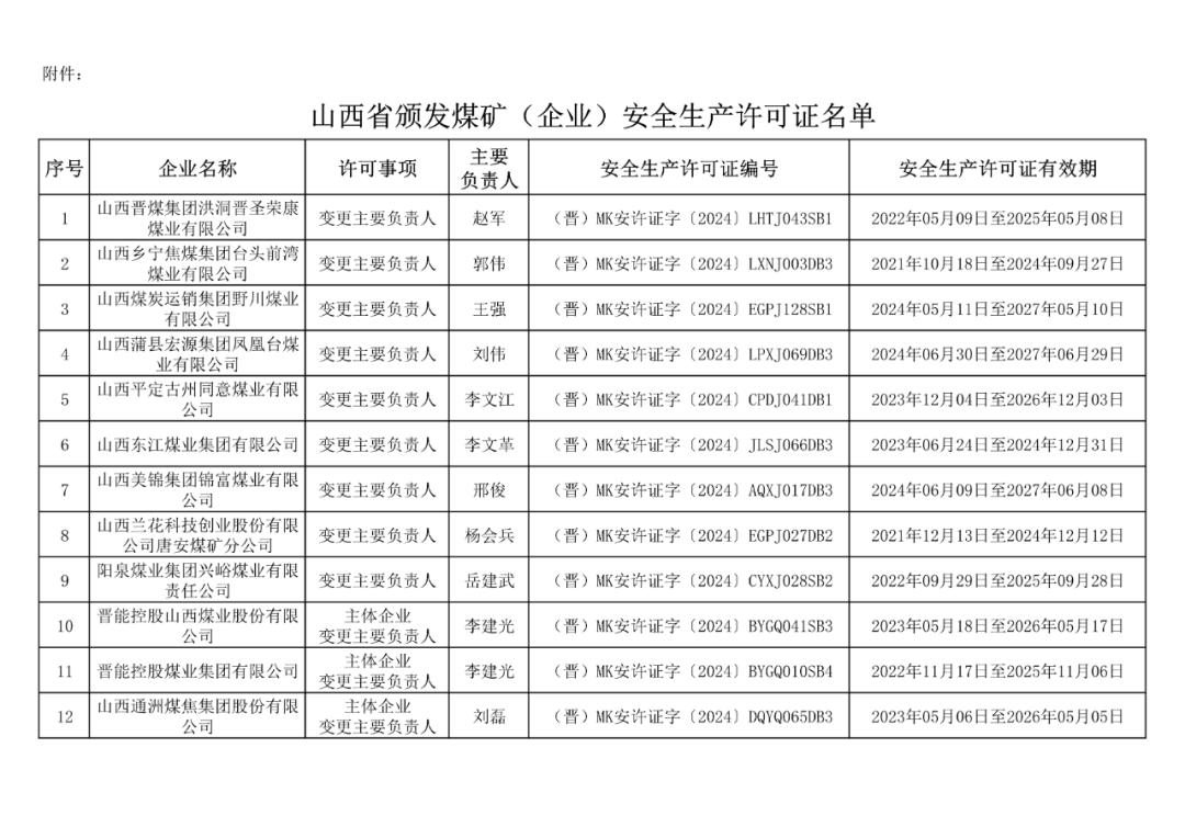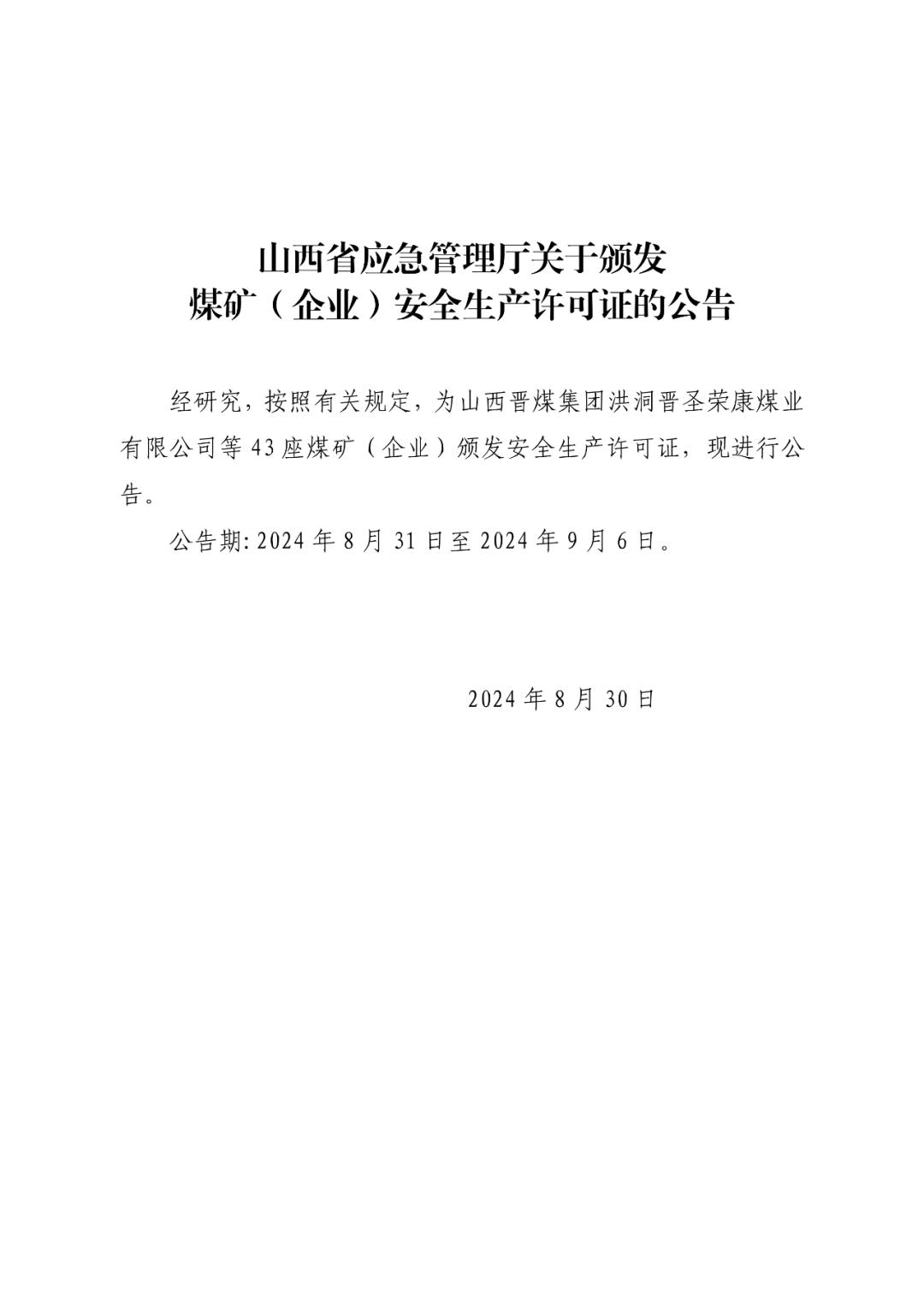 山西省應(yīng)急管理廳公告為43座煤礦(企業(yè))頒發(fā)安全生產(chǎn)許可證?