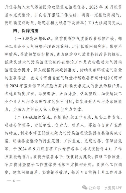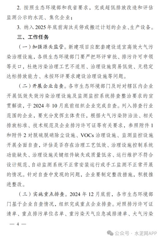 2024年12月底前,各市生態(tài)環(huán)境部門基于企業(yè)自查情況,組織完成重點企業(yè)排查。對需要整治提升的問題,要將整治提升任務(wù)納入大氣污染防治攻堅重點治理任務(wù),2025年10月底前基本完成整治,并向省廳報送工作總結(jié)。
