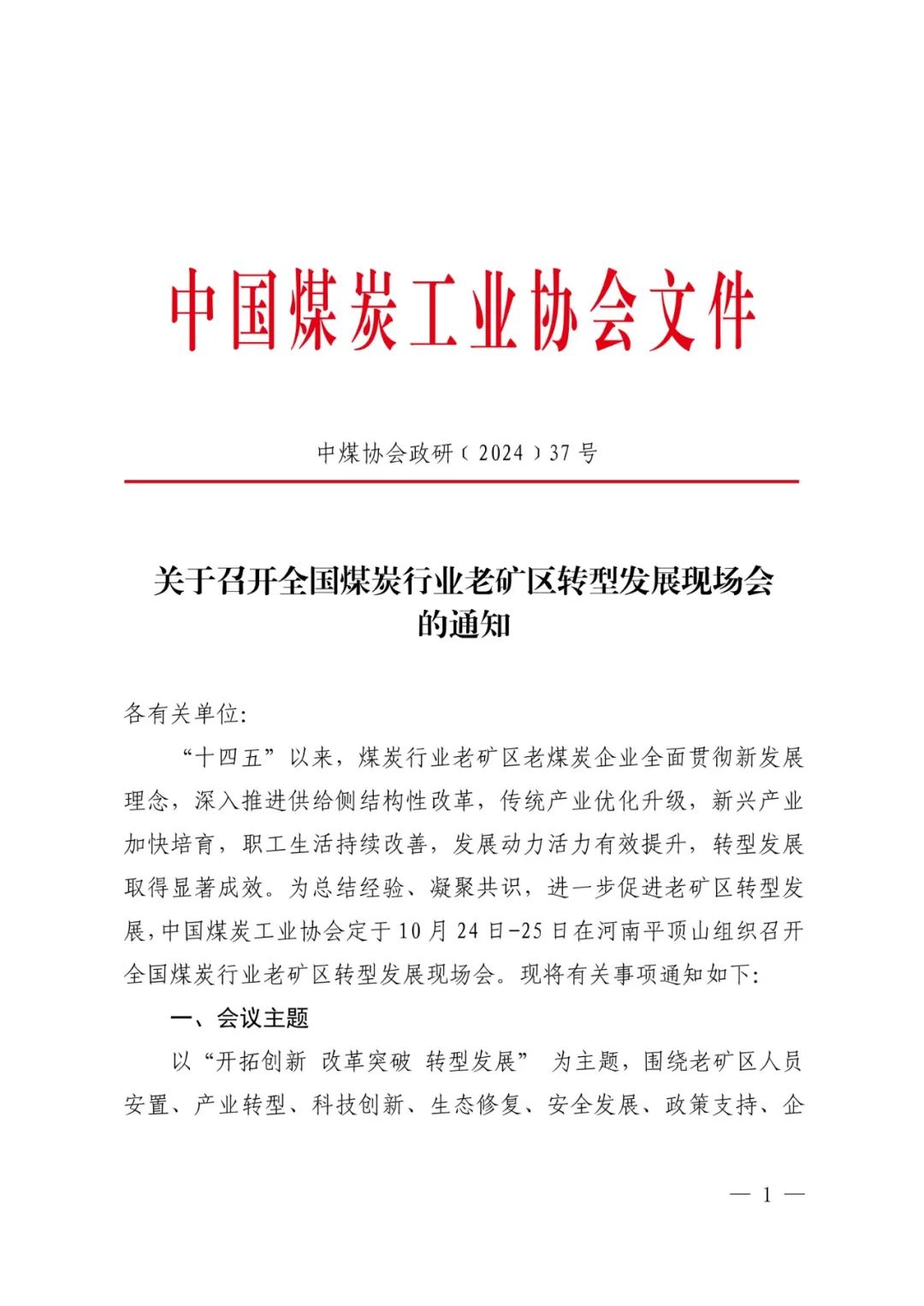 中國煤炭工業(yè)協(xié)會關(guān)于召開全國煤炭行業(yè)老礦區(qū)轉(zhuǎn)型發(fā)展現(xiàn)場會的通知
