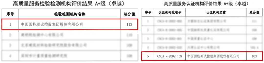 近日,中國認(rèn)證認(rèn)可協(xié)會(huì)公布深圳檢驗(yàn)檢測與認(rèn)證結(jié)果采信試點(diǎn)工作中首批高質(zhì)量服務(wù)檢驗(yàn)檢測認(rèn)證機(jī)構(gòu)評(píng)價(jià)結(jié)果。國檢集團(tuán)在檢驗(yàn)檢測機(jī)構(gòu)和認(rèn)證機(jī)構(gòu)兩類榜單中均喜獲最高A+級(jí)(卓越)。