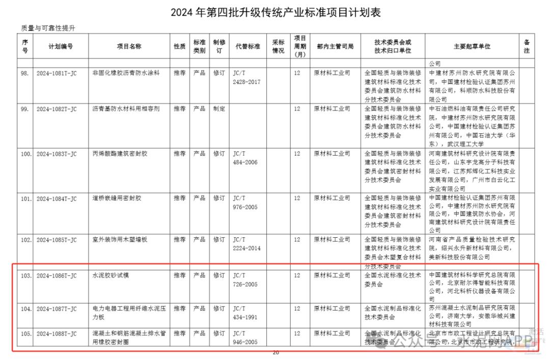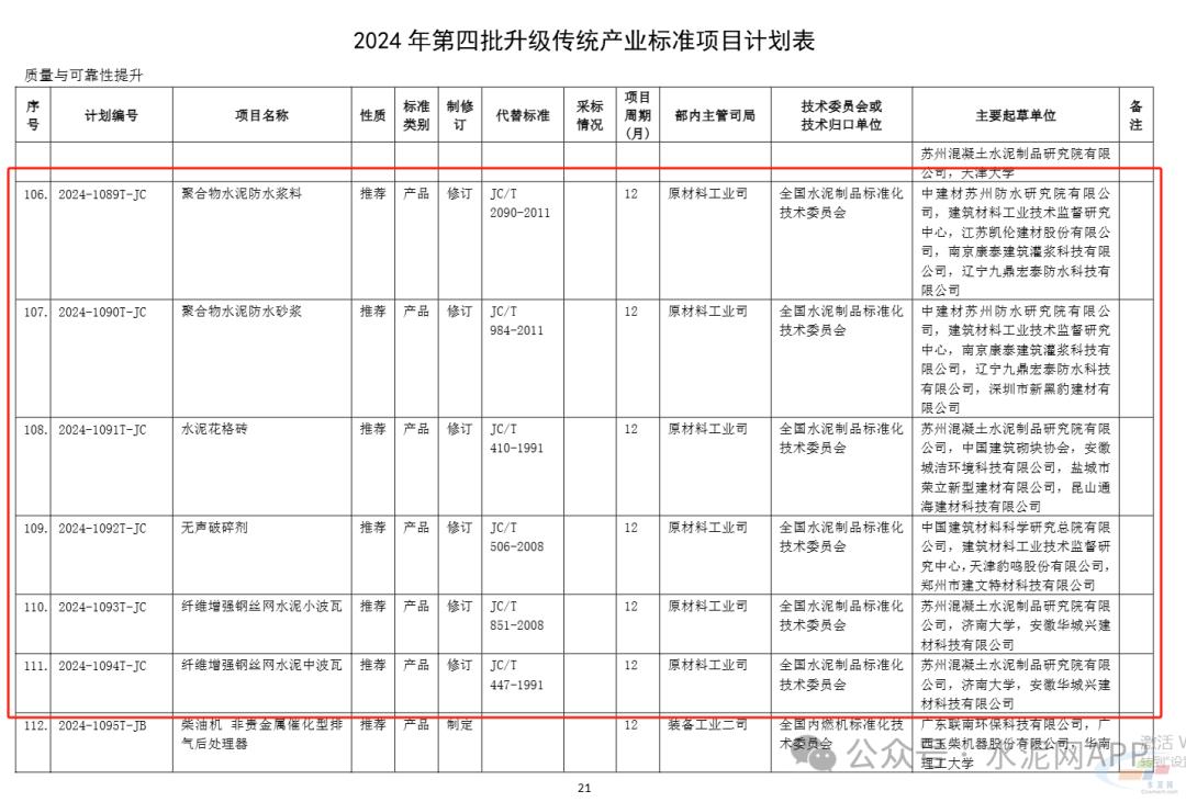 9月14日,工業(yè)和信息化部辦公廳發(fā)布關于印發(fā)2024年第四批行業(yè)標準制修訂計劃的通知。2024年第四批升級傳統(tǒng)產(chǎn)業(yè)標準項目計劃中,多個項目與水泥行業(yè)相關,整理如下: