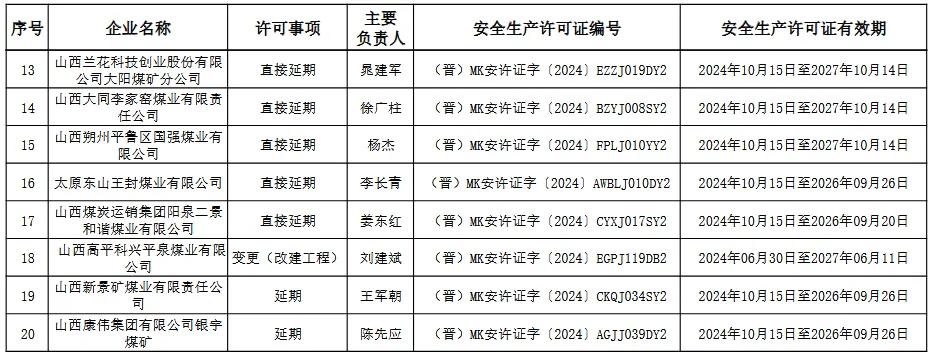 山西省應(yīng)急管理廳關(guān)于頒發(fā)煤礦(企業(yè))安全生產(chǎn)許可證的公告