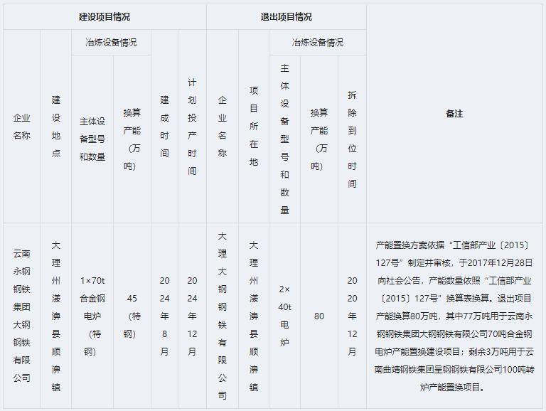 2024年10月15日,停產(chǎn)近4年的大理大鋼鋼鐵有限公司,升級改造項目產(chǎn)能置換方案執(zhí)行情況發(fā)布: