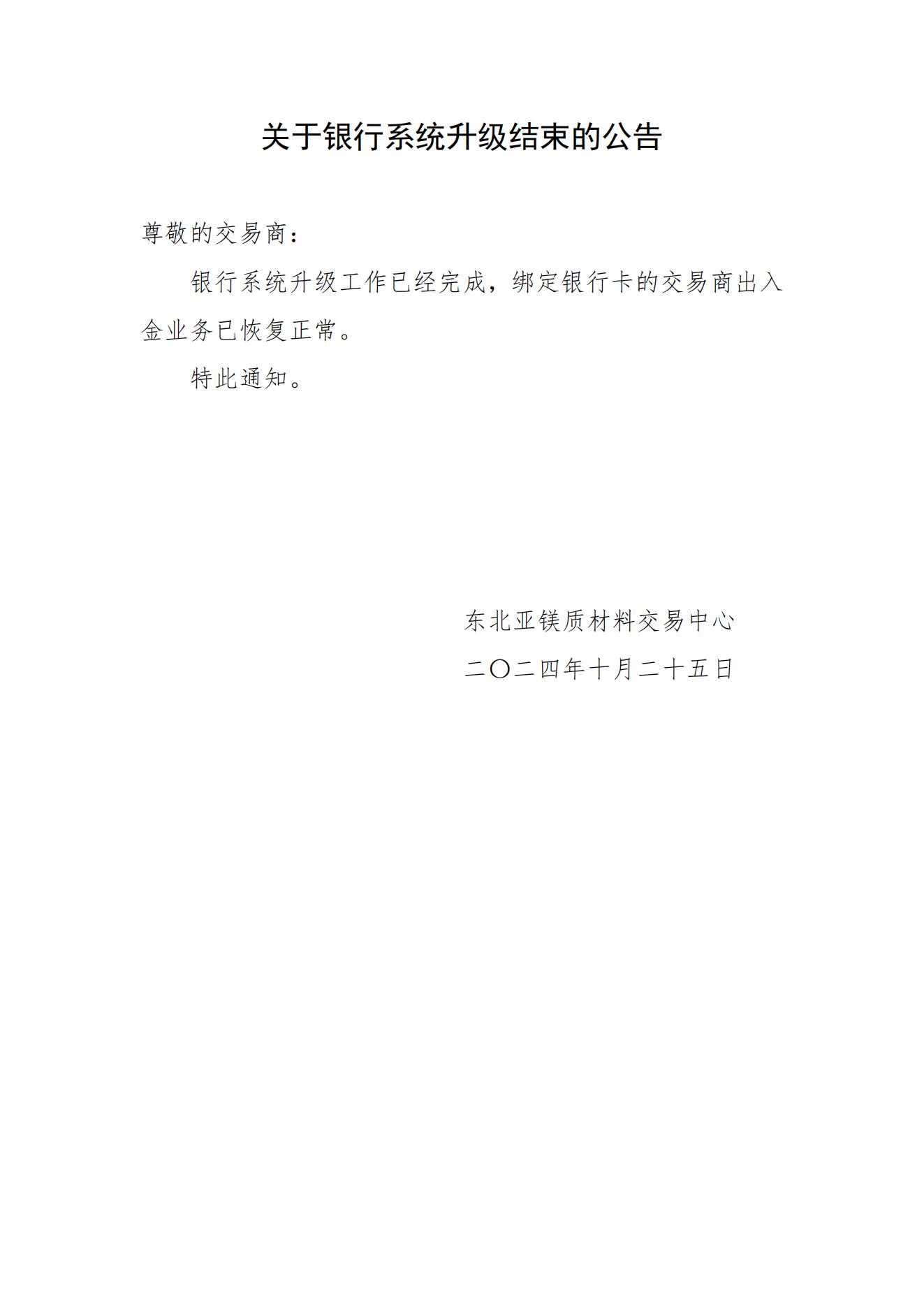 關(guān)于銀行系統(tǒng)升級(jí)結(jié)束的公告