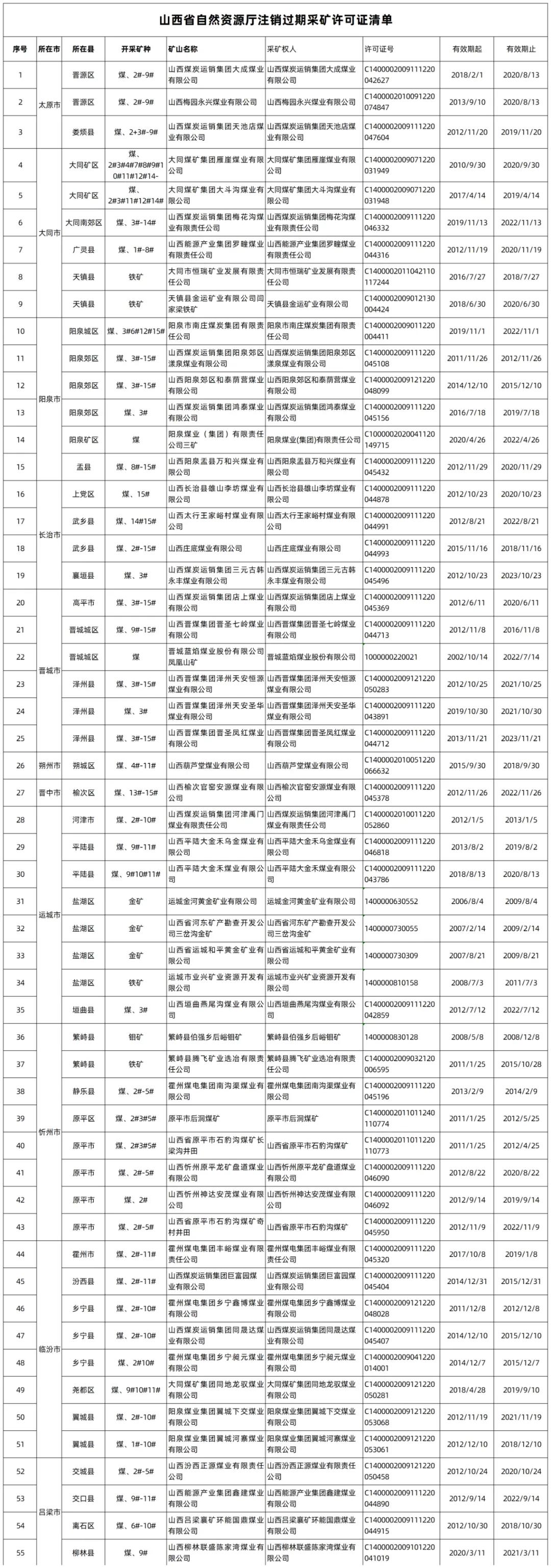 請有關企業(yè)自本公告發(fā)布之日起30日內(nèi),向我廳申請辦理采礦許可證注銷登記手續(xù)。逾期不辦理的,我廳將按照規(guī)定吊銷采礦許可證,并根據(jù)《行政許可法》規(guī)定辦理采礦許可證注銷手續(xù)。