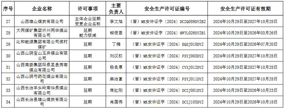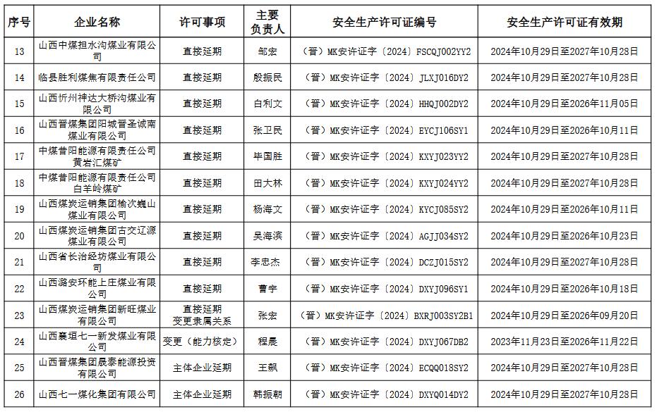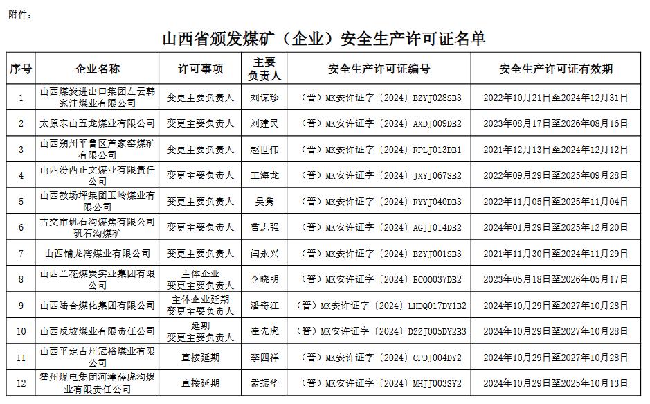 山西省應(yīng)急管理廳關(guān)于頒發(fā)煤礦(企業(yè))安全生產(chǎn)許可證的公告