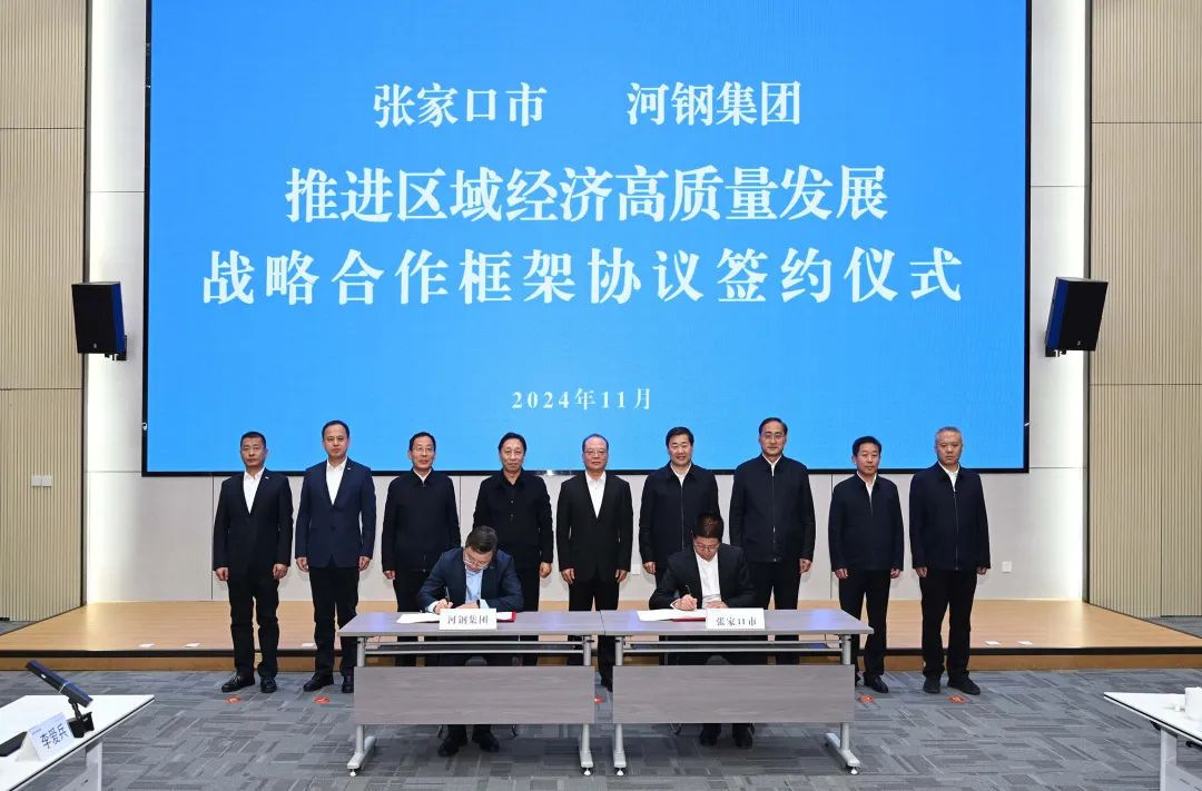 為深入貫徹黨的二十屆三中全會精神和省委十屆六次全會精神,全面落實黨中央、省委省政府決策部署,11月6日,河鋼集團與張家口市人民政府推進(jìn)區(qū)域經(jīng)濟高質(zhì)量發(fā)展戰(zhàn)略合作框架協(xié)議簽約儀式在張宣科技舉行。雙方將堅持以鋼鐵產(chǎn)業(yè)鏈高質(zhì)量發(fā)展為導(dǎo)向,在高端綠色鋼鐵材料、高端裝備制造、綠色能源、氫能產(chǎn)業(yè)鏈延伸、資源再生與循環(huán)經(jīng)濟、科研成果轉(zhuǎn)化與產(chǎn)業(yè)孵化、城市更新改造等方面深化合作,實現(xiàn)政企優(yōu)勢互補、協(xié)同發(fā)展,共同為奮力譜寫中國式現(xiàn)代化建設(shè)河北篇章作出新的更大貢獻(xiàn)。
