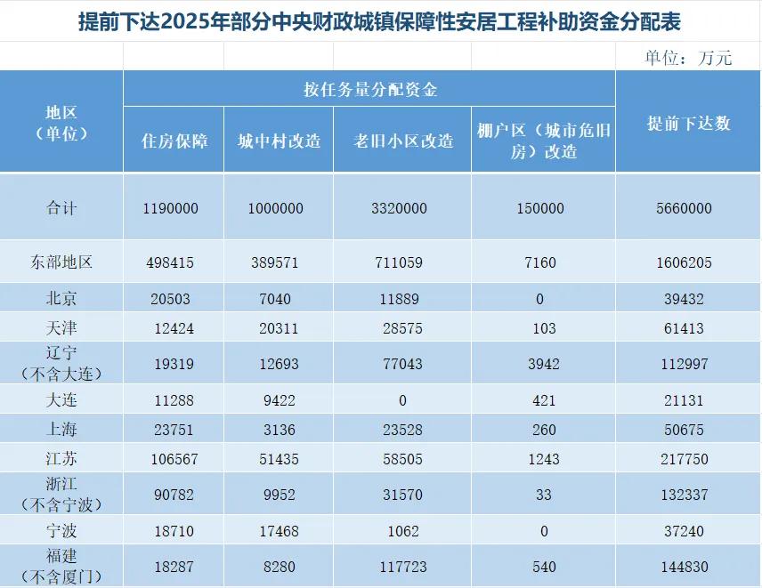 附件:提前下達(dá)2025年部分中央財(cái)政城鎮(zhèn)保障性安居工程補(bǔ)助資金分配表